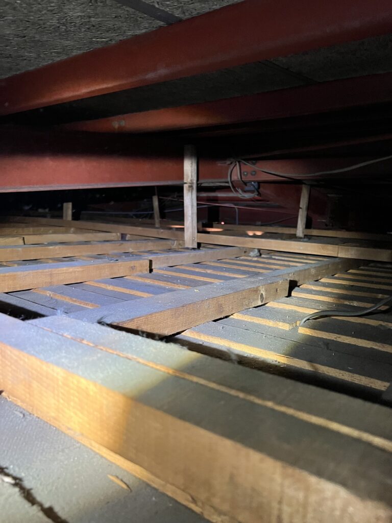 足音のする天井には点検口が無く、確認できる状況ではなかったので、自社にて点検口を作成し天井裏を確認致しました。