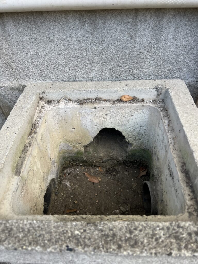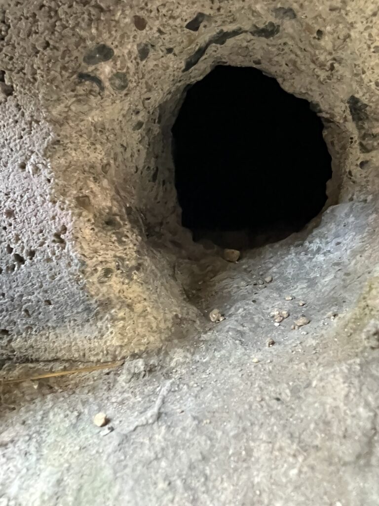 この穴を通ると建物の床下に侵入でき、壁内部を通り