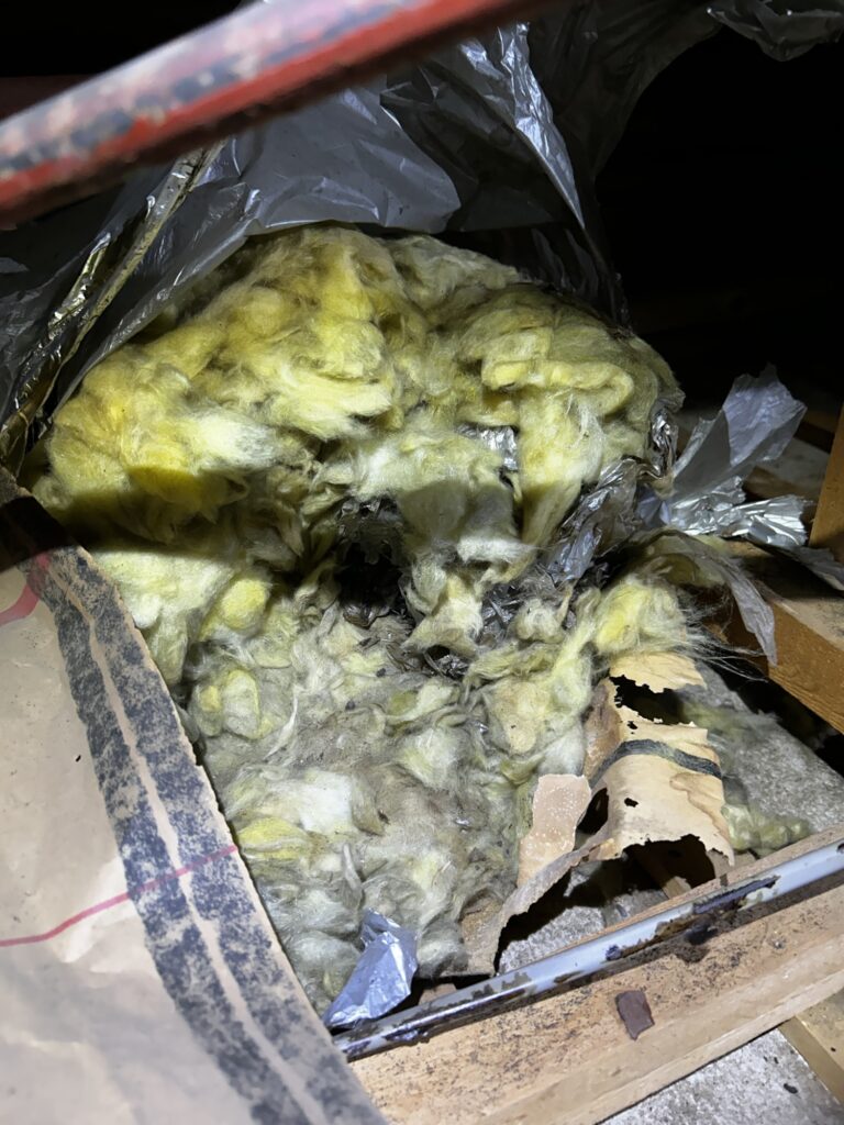 ネズミの被害もありましたので、天井裏の清掃、殺菌処理、消臭処理を徹底的に作業して、断熱材の撤去もする事となりました。