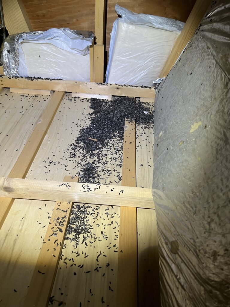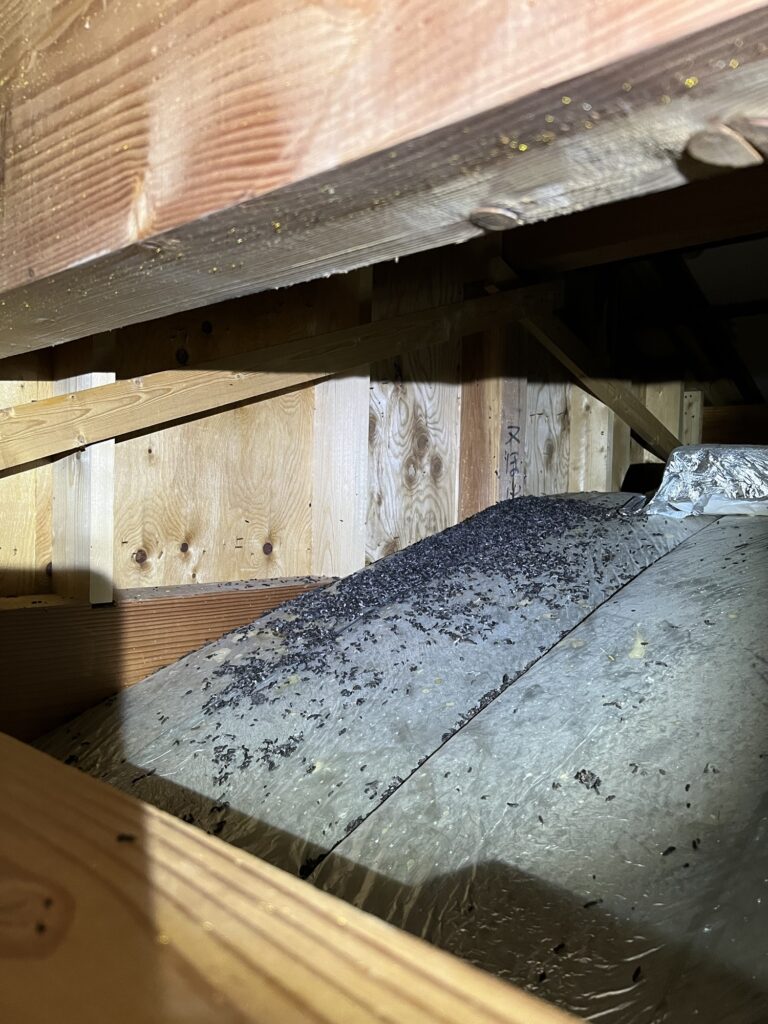 コウモリの糞害は身体に悪影響を及ぼすと言われてます。天井裏に住み着くと大量の糞をします。